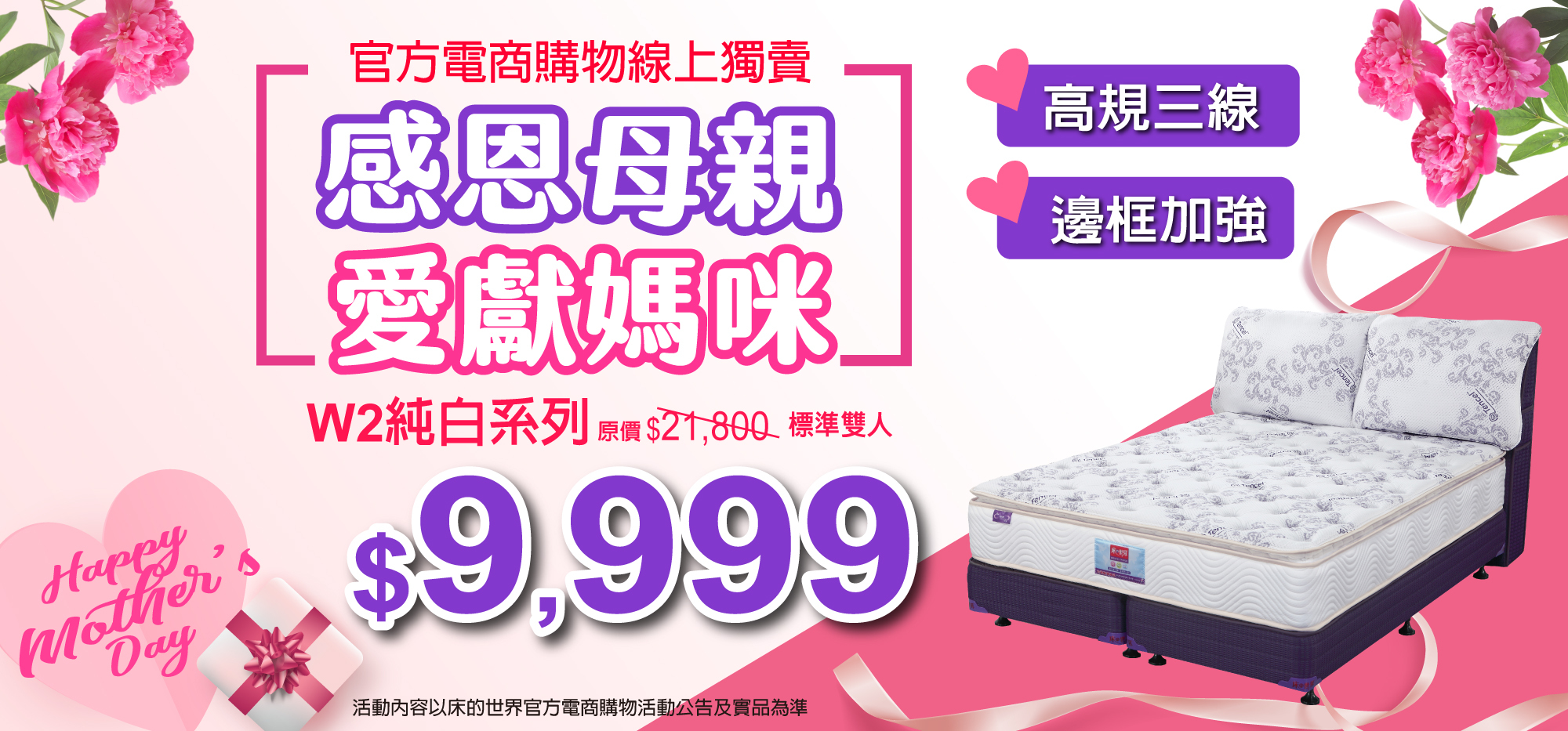 注意事項:1.活動僅限床的世界官方購物商城2.活動限時回饋,售完為止3.床的世界官方購物商城有權修改、終止、取消、暫停本活動